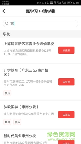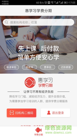 惠学习app是一款能帮你完成自费学习梦想的软件,在这里你可以享受先学习后付款的优惠待遇,还可以选择你想要学习的课程和学校来进行报名,专业的实名认证以便保证你的信息安全,一当接受你的申请,即可享受分期付费的学习机会,需要的朋友就来绿色资源网下载使用吧!