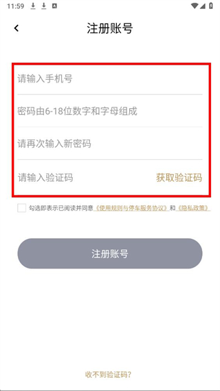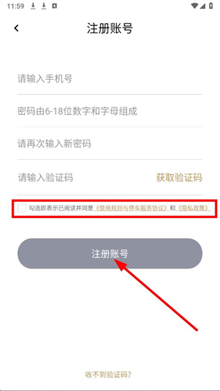 3、勾选同意相关协议后,点击注册帐号按钮,即可完成宜昌城市停车app的账号注册。