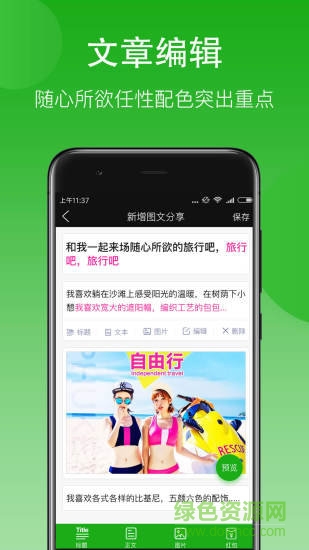 享脉社app是一款非常实用的文字编辑工具,如果你想对分享的图片中添加任何文字信息或者长篇文章,就可以利用这款软件实现这些操作,而且还能实时更改哦,功能强大,有需要的朋友可不要错过了,欢迎来绿色资源网下载使用。