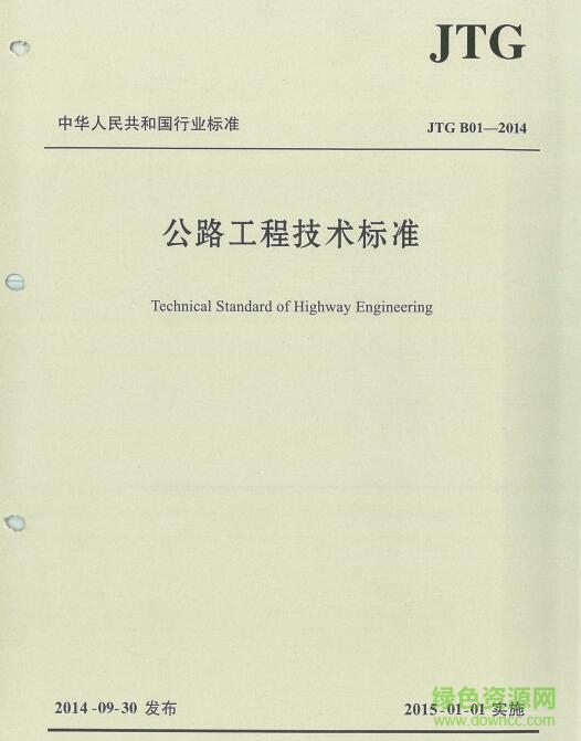 《公路工程技术标准》(JTG B01-2014)是交通运输部公路局、中交第一公路勘察设计研究院有限公司主编的,人民交通出版社出版的工程标准,于2014年9月30日正式签发,于2015年1月1日起施行。