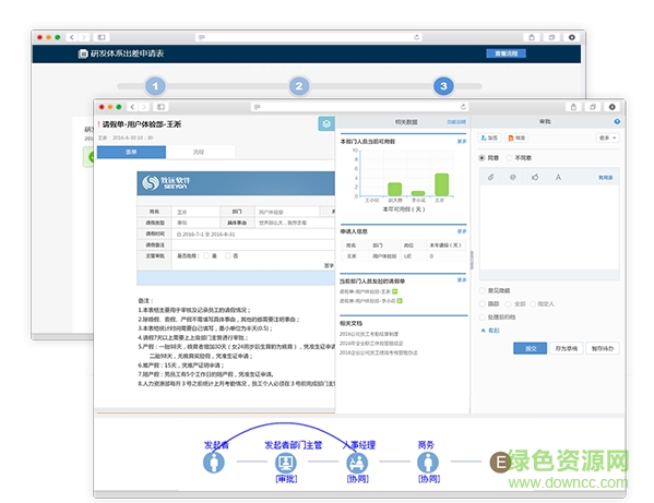 1、二元化工作流:独有的二元化工作流,实现刚性的制度与柔性的流程 相结合,实现快速审批。并且支持加签、减签、会签、知会、修改、 回退、撤销、终止、移交、转发、督办、关联、收藏、流程自动分 支、多条件分支策略,满足企业各种复杂流程处理状况。