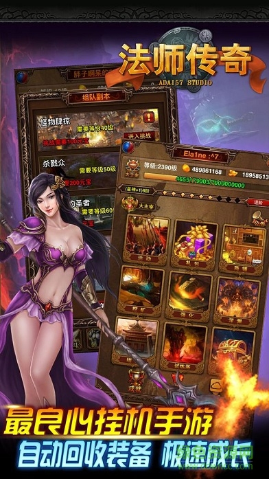 《法师传奇》是首款可网游可单机的放置类挂机游戏,2017年全民级挂机游戏。这是一款经典放置类游戏,拥有超乎你想像的简单玩法!神秘冒险的副本,惊艳全服的装备,寻找我们最初的快乐!在这里,灵魂的封印被解开,金币装备自动捡,从你创建角色开始就开始不停地刷图过BOSS,即使下线退出游戏也不会停!在这里,你拥有强大的英雄,可以是众生膜拜的对象!为荣耀而战!在这里,你探索惊心动魄的冒险世界,搜寻远古遗迹中的神器!在这里,你雇佣各大职业誓死为你效劳,叱咤风云,战无不胜!你的旅程即将开始……