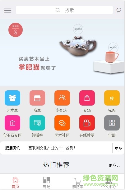 掌肥猫艺术直购网app是一款非常火爆的艺术品购物平台哦,这款软件能为用户提供最优质的艺术品,还有各种艺术讨论社区哦,感兴趣的朋友赶紧来绿色资源网下载试玩吧!