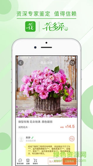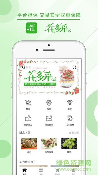 花多采软件是一款非常好用的多肉盆栽采购app,这里汇集了丰富的花卉资源,用户可以在线挑选自己喜欢的植物和相关的花卉资材,欢迎大家到绿色资源网下载体验!
