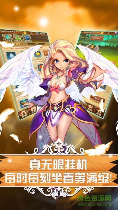 传统卡牌战斗,全自动释放技能,百位天使任你选择,众多上线助你战个痛快!