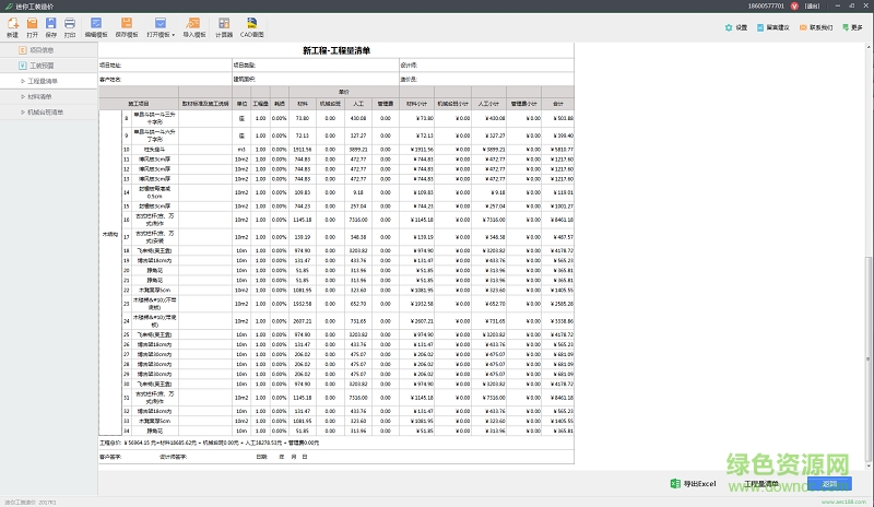 快速完成工程量清单、材料详细清单、机械人工清单;