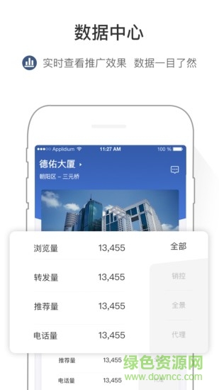 实时查看销控、全景、经纪公司、经纪人的浏览量、转发量、推荐量、电话量,为楼宇租售做精准判断