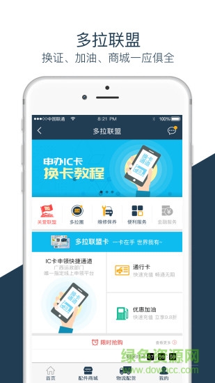 多拉联盟是针对货车提供的一站式服务平台,提供换证、加油、商城等服务,通过该平台用户可以快速接单,有效提高工作效率,商城中提供了丰富的汽车配件及商品,轻松享受出行生活,欢迎来绿色资源网下载!