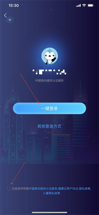 3、在登录页面勾选同意相关协议后,点击一键登录,完成账号登录。