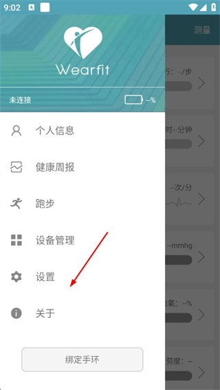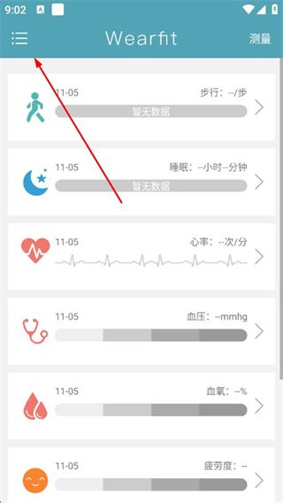 1、打开Wearfit APP,点击左上角三条横线的菜单图标。