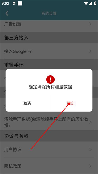 4、在弹出的确认框中,点击确定,清空手环数据。