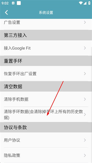 3、在系统设置页面,点击清除手环数据项。