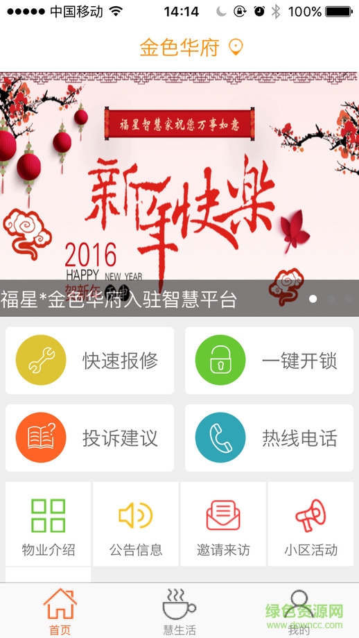 覆盖物业缴费、一键报修,一键开锁、邀请访客、快递代收、二手市场、投诉建议、移动验房等