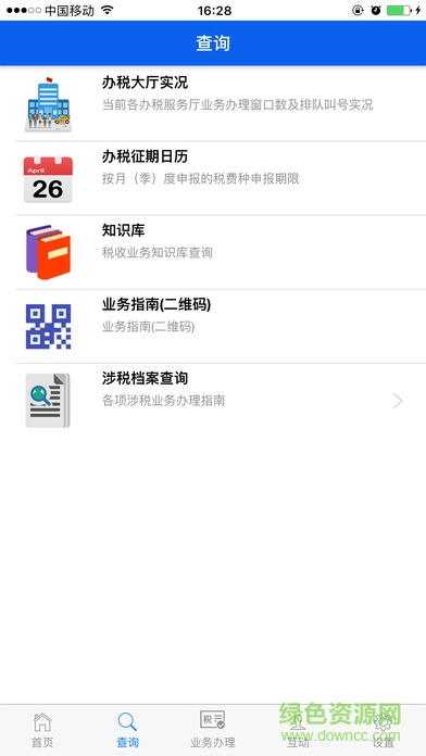 4.涉税查询服务:为纳税人、公众提供办税大厅地点/地图查询、税务登记信息查验、纳税信用等级查询、车船税查询、发票查验、文书查询、个税完税查验、缴款凭证查询下载等涉税查询服务