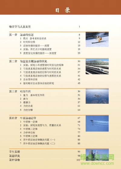 高中物理必修一电子书主要从运动的描述、匀变速直线运动的研究、相互作用、牛顿运动定律四个方面进行了讲解了,内容丰富,通俗易懂,感兴趣的朋友欢迎来绿色资源网下载使用!