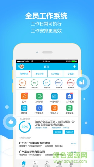 工作管家软件是一款非常便捷的工作管理app,用户可以在这里查看详细的工作任务,可以进行客户的管理和薪资查询,欢迎有需要的朋友到绿色资源网下载体验!