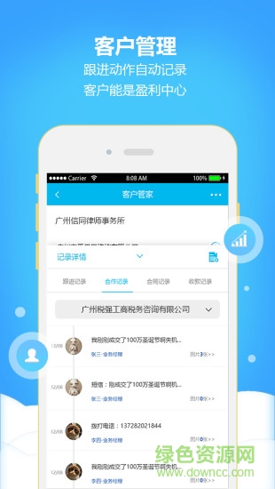 4.客户档案:跟进细节智能记录,还能显示合作伙伴的跟进和收款情况,分成变得很简单;客户仓库,全国工商注册的这都有
