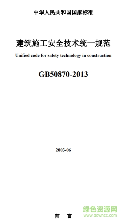 gb50870-2013是一个关于建筑施工安全技术统一规范的国家标准文件,统一了建筑施工中的各种规范和规程,保证了施工人员的安全,绿色资源网欢迎大家免费下载!