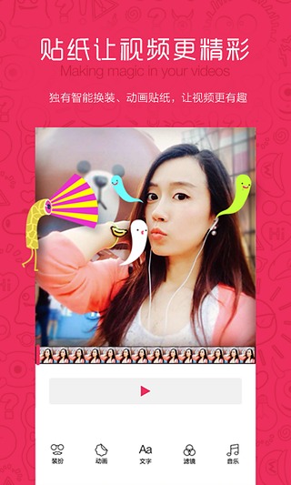 上百款精美动画贴纸,让你拍出来的视频萌萌哒。小猫、小王子、外星人陪你玩转不一样的视频!