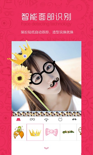 3、智能面部识别:化妆道具自动跟踪,造型说换就换;