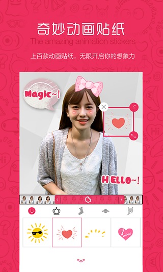 * 丰富的动画贴纸库,玩转上千款精美的动画贴纸——人气明星、动漫角色、潮流ICON。