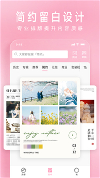 简拼app是由poco官方新推出的一款极致简单的手机拼图应用当下滤镜、修图类APP繁多,部分功能虽强大好用,但有时褪去繁复,简单本身就是一种美。简拼专注于图片拼接与文字处理,还能通过适当留白让图片呈现出简约而不简单的质感。文艺的留白拼图设计、贴心的便签功能以及强大的文字编辑工具,让用户在图片分享过程中,轻松打造出富有格调的作品。