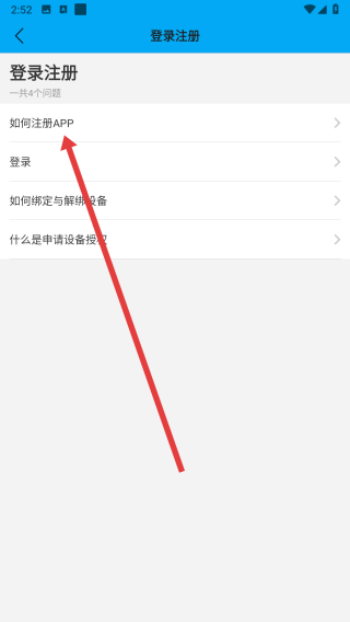 3、在进入到登录注册问题页面时,可以点击如何注册APP选项,查看注册方法。