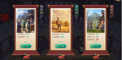 第一个是纳税 ,可获得银两 ,用于提升大臣等级 。