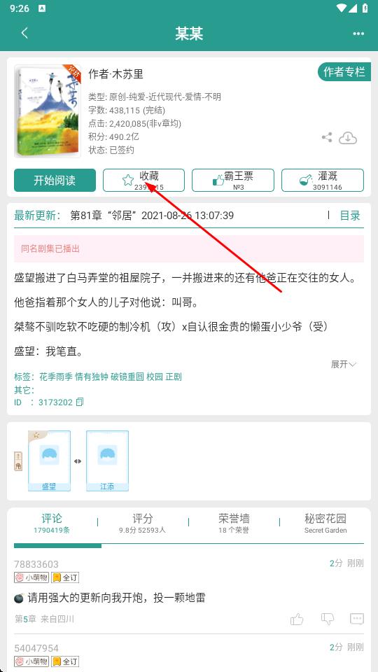 1、进入书城界面,找到目标小说如《某某》),点击进入书籍详情页,查看作品信息与内容简介。