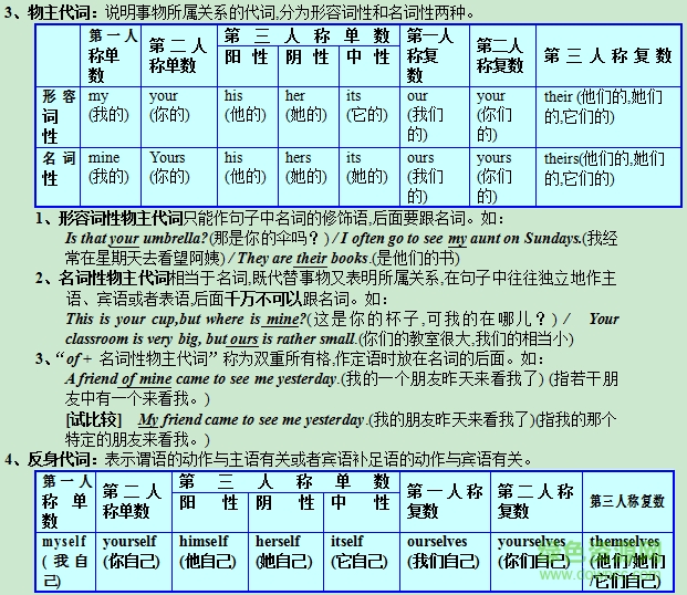 4、数词(num.): 表示数目或事物的顺序。如:one, two, three, first, second, third, fourth.