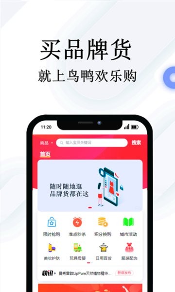 买品牌货就上鸟鸭欢乐购,城市社交电商领跑者,品牌砍价购物的第三方城市社交电商平台,更懂品牌宠粉的手机购物app,您喜欢的品牌都可以砍价,选定品牌商品后发起和同学、家人、朋友一起砍价,就能以最低价购买品牌商品,省钱又好用,欢乐又好玩。