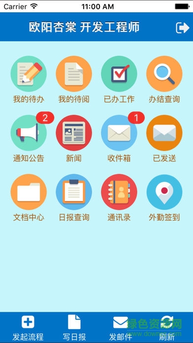璐华OA app是由璐华科技官方推出的一款oa办公系统,员工登录系统后可在线查看公司最新公告及新闻资讯,提供待办事项、已办工作、通讯录、外勤签到等模块,轻松办公提高工作效率,快来绿色资源网下载吧!