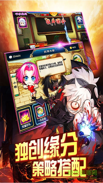 忍者传说是根据人气动漫开发的一款卡牌冒险手游,游戏采用动漫风人物设计,剧情丰富紧促,提供了超多任务供玩家闯关挑战,支持好友组队玩法,实时语音聊天快速帮助玩家取胜,欢迎来绿色资源网下载!