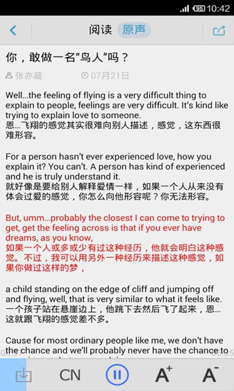 原声听力:海量资源,精挑细选;对照翻译,同步定位,感受英语国家风情,体验纯正英语口语;