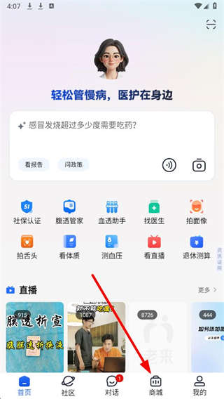 1、在首页界面底部,找到商城选项并点击,进入商城页面。