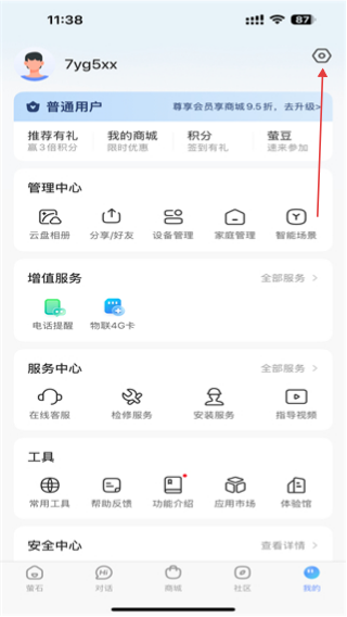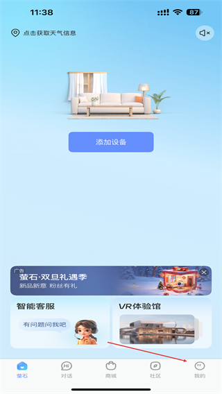 1、启动萤石云视频的应用,在首页右下点击我的图标。