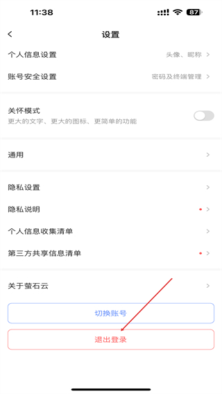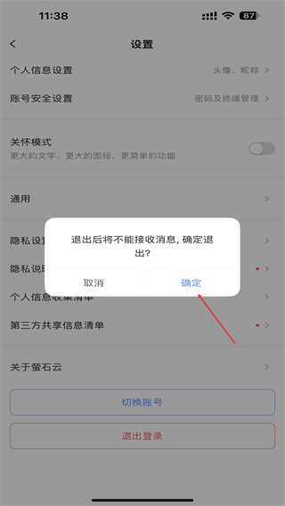 3、在设置界面的底部,点击退出登录,触发确认提示弹窗。
