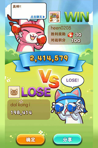 游戏的画面风格依然主打萌系,这次的主角是猫,各种猫咪的造型真是让人忍不住想要摸一下啊,对于喵星人有特别关爱的同学光是看画面就有点抵挡不住了吧,另外在各种小游戏中,特效的表现也是非常出色的,比如发动特技以及各种加分奖励,配合动感的音效,觉得让玩家特别有成就感,综上所属画面表现我还是给予了不错的评价