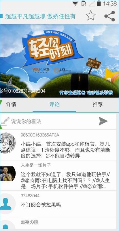 轻松时刻是一款由优酷土豆官方推出的搞笑娱乐手机应用。软件内包含各种内涵搞笑视频、内涵段子、八卦娱乐,能让你的生活顿时充满欢快,是百万用户的共同选择。软件结合了多家视频网站的搞笑内容,总有一个视频让你忍俊不禁,精彩乐不停,快来和大家一起分享吧!