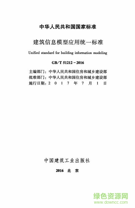 gb/t 51212-2016标准这本《建筑信息模型应用统一标准》详细的讲述了建筑信息模型的最新统一标准,通过按照此标准即可实现建筑模型的统一建设,更好的服务于建筑行业,快来绿色资源网下载吧!