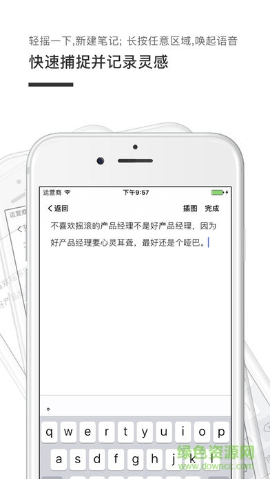 快速记录灵感:轻摇一下,新建笔记;长按任意区域,唤起语音输入。快速记录一闪而过的想法。