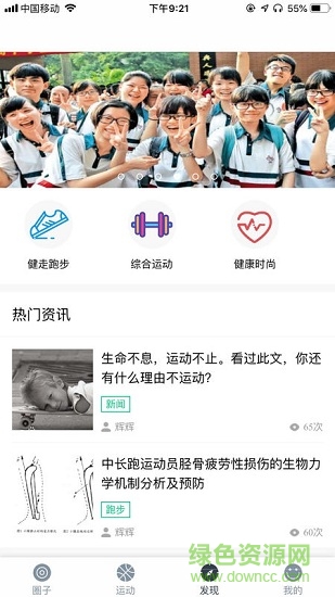 【发现】运动损伤、运动效果差无时无刻不在困扰着每一个运动爱好者,在这里将为你提供 科学的运动知识,让你爱上运动;丰富的健康资讯让枯燥的运动不复存在,让你在运动的 同时享受乐趣。