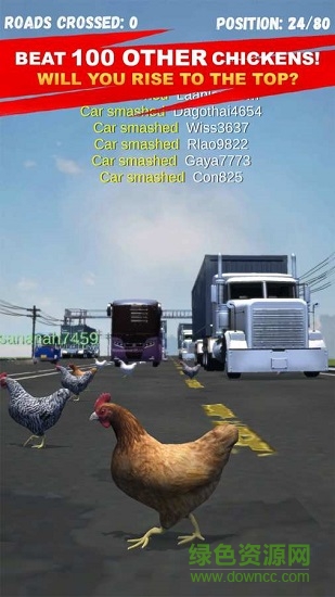 敏捷过马路游戏,游戏玩法简单,敏捷点击屏幕,让鸡避开来往的汽车安全的到达公路的对面