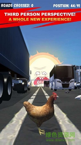 这里大家控制的是一只公鸡,在车流量非常大的马路上进行穿越