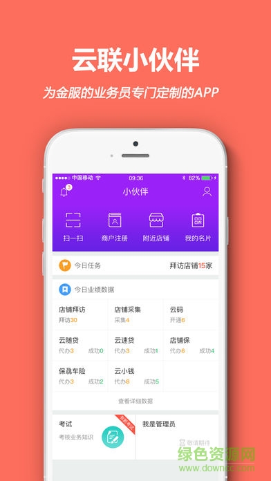 云联金服小伙伴安卓版是一款功能强大的分销管理软件,主要针对金融服务行业的业务员打造,通过app业务员可以快速便利贷款、保险、理财等业务,数据统计实时更新业绩信息一目了然,需要的朋友欢迎来绿色资源网下载!