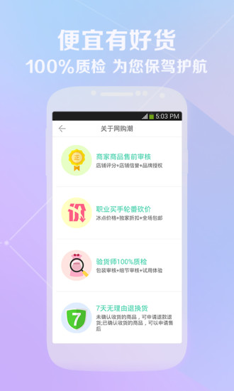 网购潮是你身边的时尚实惠网购专家!一款比较特别的手机购物软件,主要针对的是宅男宅女,充分发挥DIY精神,享受网购的乐趣。