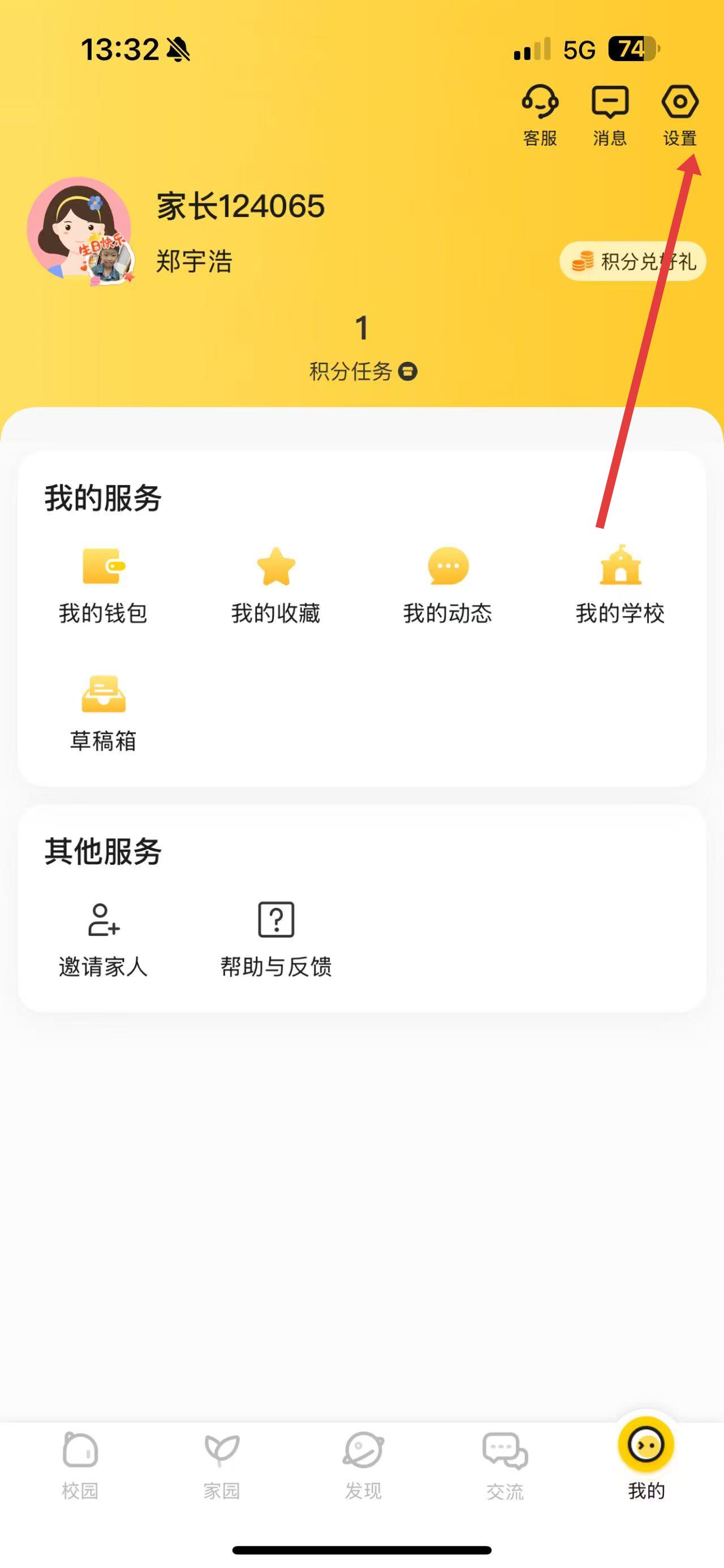 1、在个人页面右上角,点击设置图标进入设置界面。