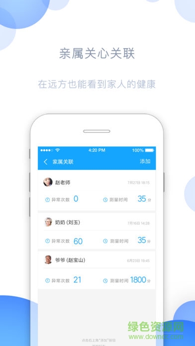 -可以进行多个账号绑定,实现家属关联,可以进行远程监测,为您及家人心脏绿色资源网健康保驾护航。