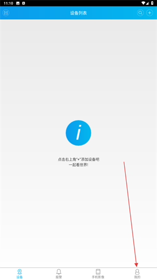 1、启动监控眼的应用,点击首页右下角我的图标按钮。