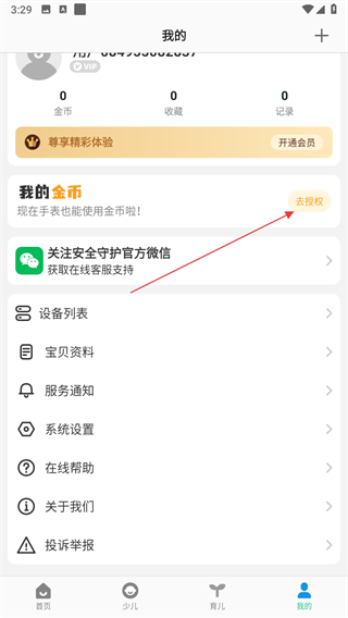 安全守护怎么授权手表使用金币